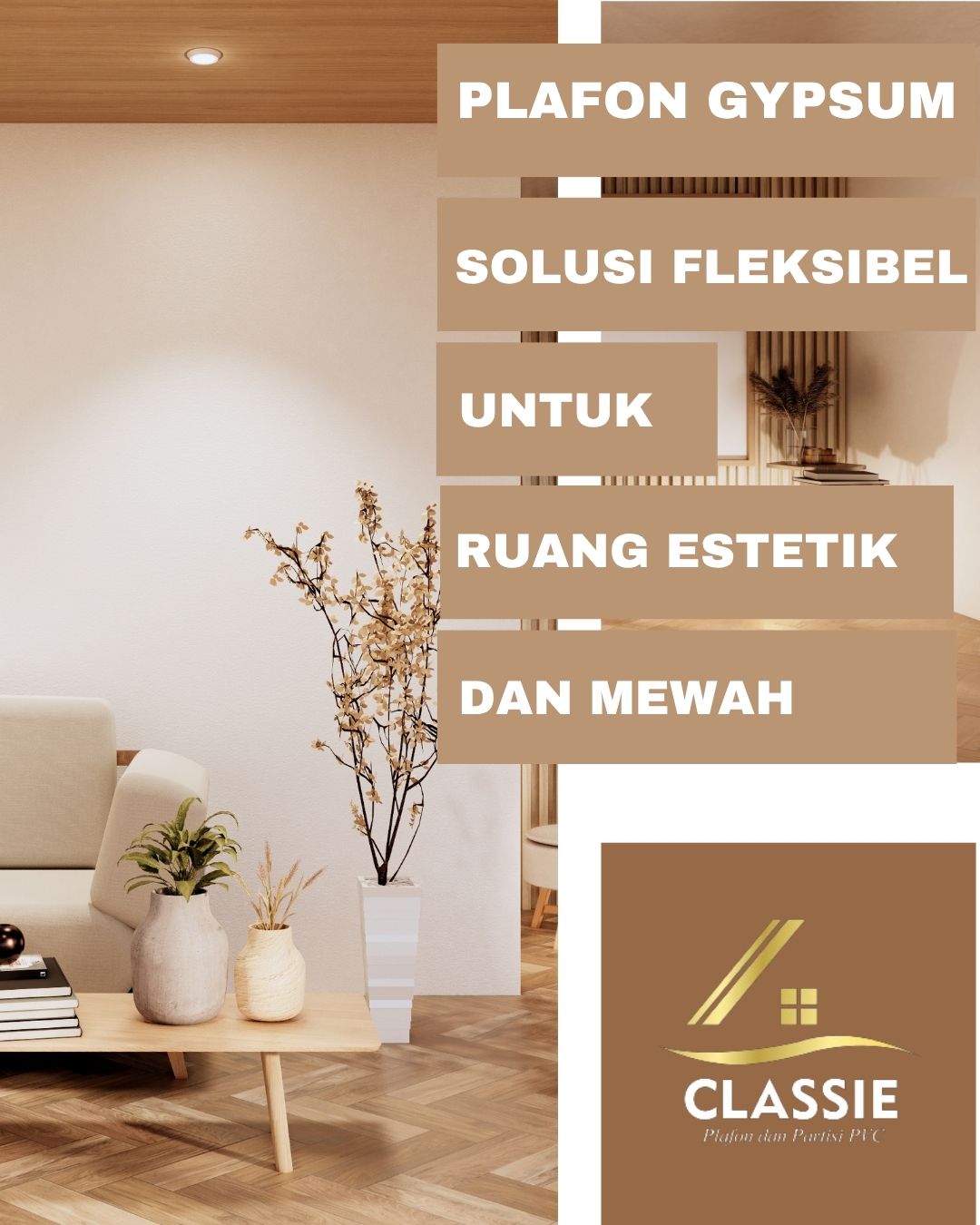 Selamat datang di Classie Plafon PVC dan Interior! Selain Plafon PVC , kami juga spesialis dalam menciptakan keindahan menggunakan Plafon Gypsum.